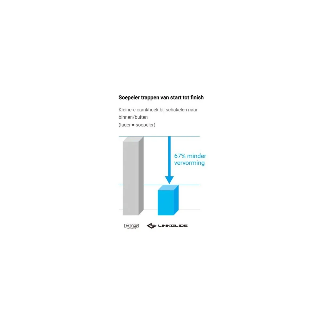 Met het robuuste cassette-ontwerp schakel je moeiteloos op en neer, terwijl de slijtage van de componenten aanzienlijk wordt verminderd. Het LINKGLIDE systeem staat bekend om zijn duurzaamheid en is bestand tegen dagelijkse belastingen. Het biedt tot driemaal de duurzaamheid van HYPERGLIDE bij een hoge kettingspanning, wat resulteert in langer en soepeler trappen.