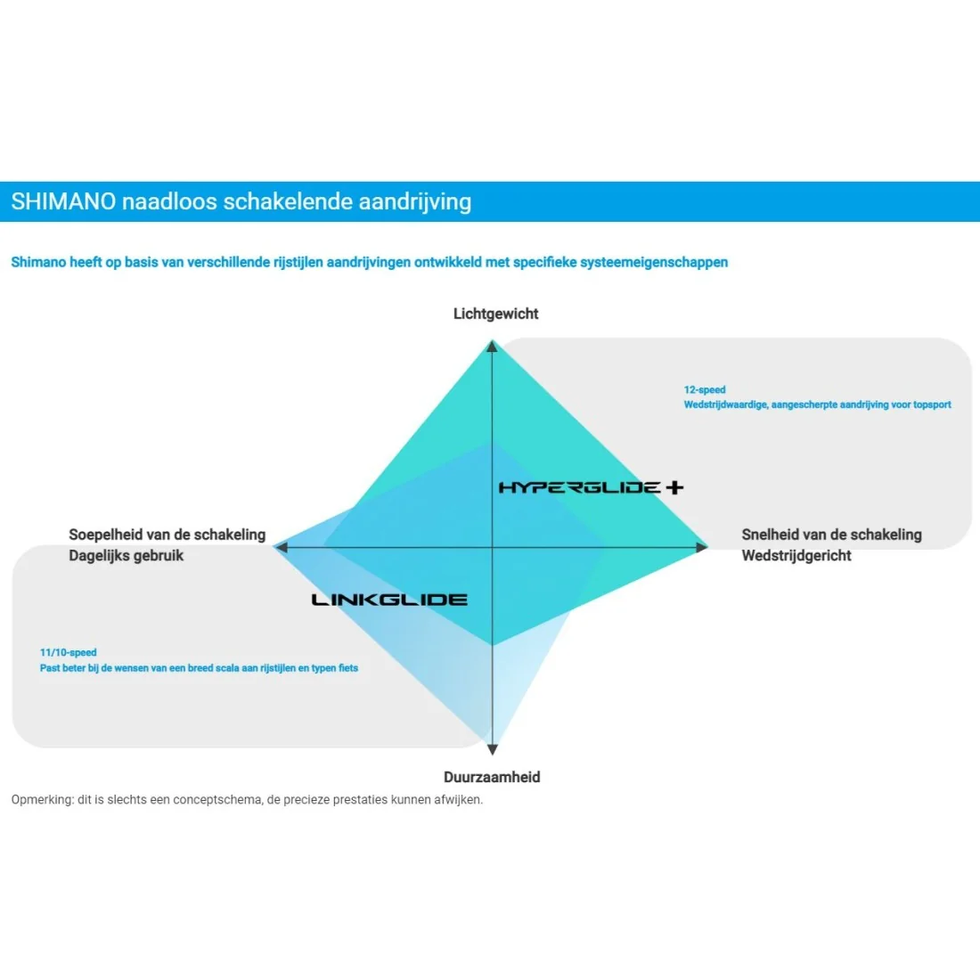 Dankzij het LINKGLIDE systeem geniet je van soepel schakelen in beide richtingen, zowel naar binnen als naar buiten. De cassette is compatibel met LINKGLIDE ketting CN-LG500 in 10- en 11-speed, en is verkrijgbaar met een QUICKLINK kettingslot in verschillende lengtes. Daarnaast zijn er ook I-Spec-versie shifters beschikbaar die compatibel zijn met LINKGLIDE derailleurs.