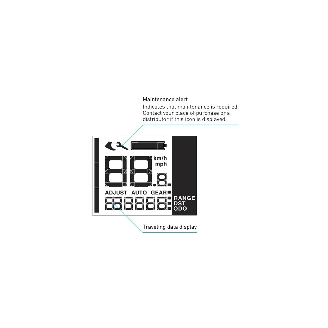 Deze fietscomputer is ontworpen met het oog op gebruiksgemak. Met eenvoudige en intuïtieve knopbediening kun je gemakkelijk door de verschillende functies navigeren. Het LCD-scherm toont belangrijke rijgegevens zoals de actieradius, afstand, snelheid en versnellingsstand.
