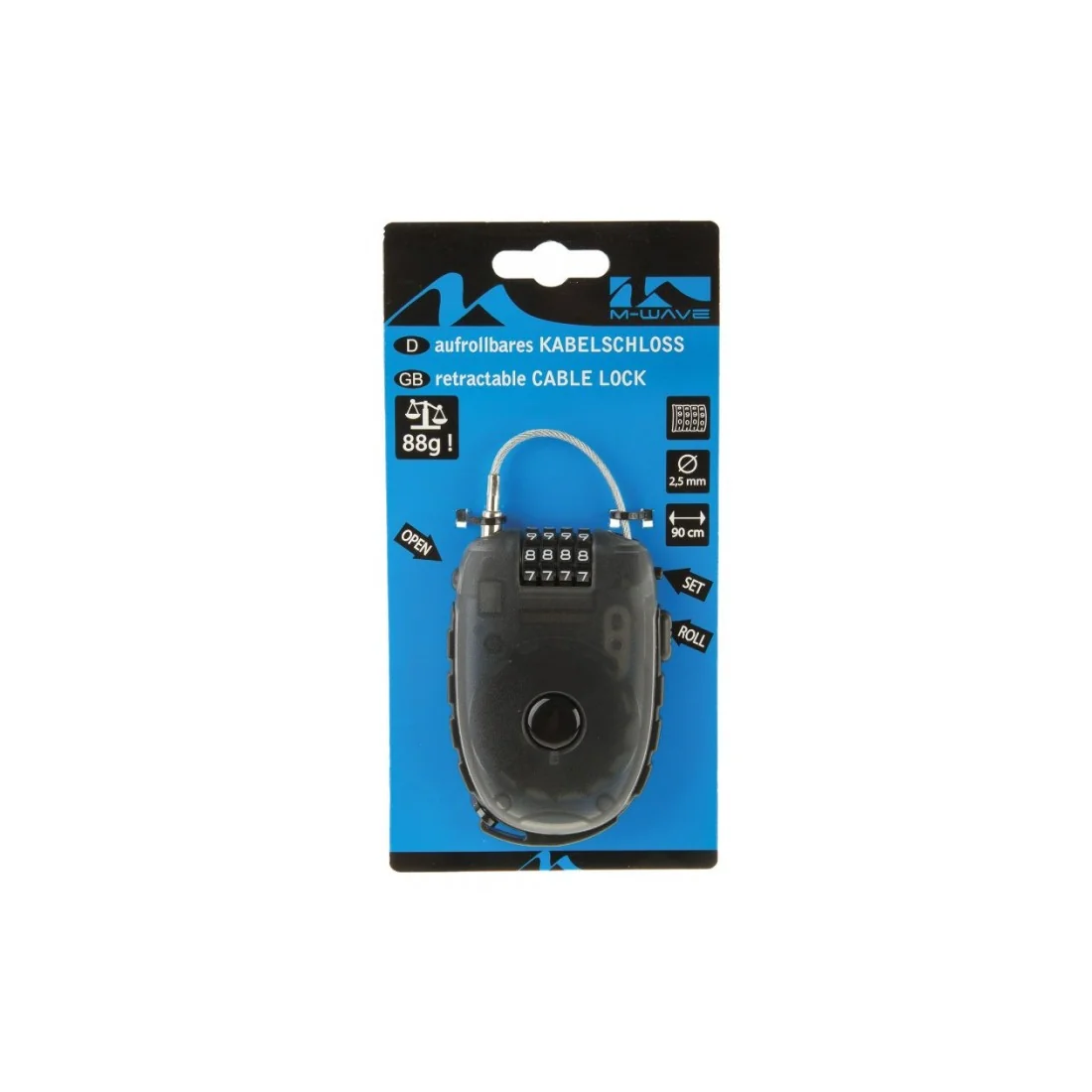 De donkere, transparante behuizing van het slot zorgt voor een moderne uitstraling en beschermt het mechanisme tegen vuil en vocht. Het slot wordt geleverd op een M-Wave eurohole kaart, zodat het gemakkelijk in een winkel kan worden opgehangen of aan een display kan worden bevestigd.