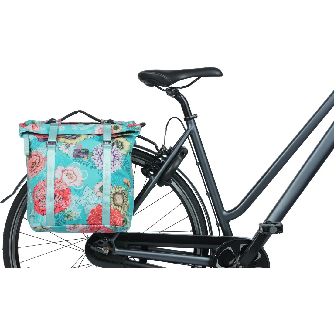 De Basil Bloom Field Double MIK heeft een opvallende sky blue kleur die ervoor zorgt dat je altijd in stijl onderweg bent. De tas is voorzien van een ritssluiting en een extra klittenbandsluiting, zodat je spullen veilig opgeborgen zijn. Bovendien zorgen de reflecterende details op alle zijden ervoor dat je altijd goed zichtbaar bent voor andere weggebruikers.