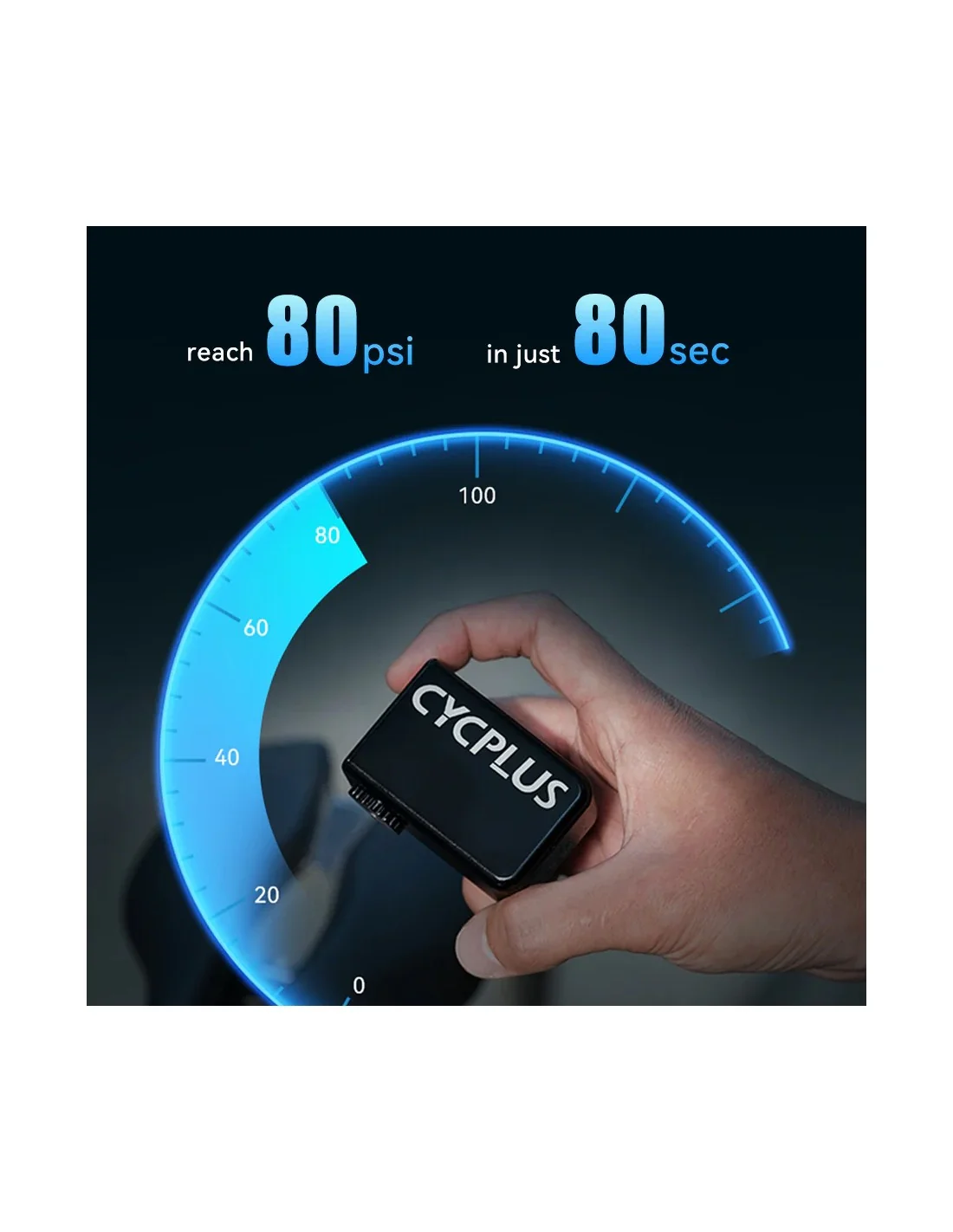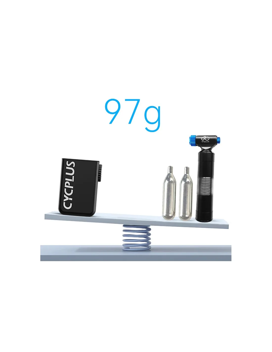 Met een gewicht van slechts 97 gram en afmetingen van 65 x 46.5 x 28mm, past deze mini-fietspomp moeiteloos in je achterzak. Je zult nauwelijks merken dat je hem bij je hebt. Maar onderschat zijn kracht niet. Met een maximale druk van 100Psi kan deze pomp maar liefst 2 banden van 700*25C opblazen tot een druk van 80Psi.