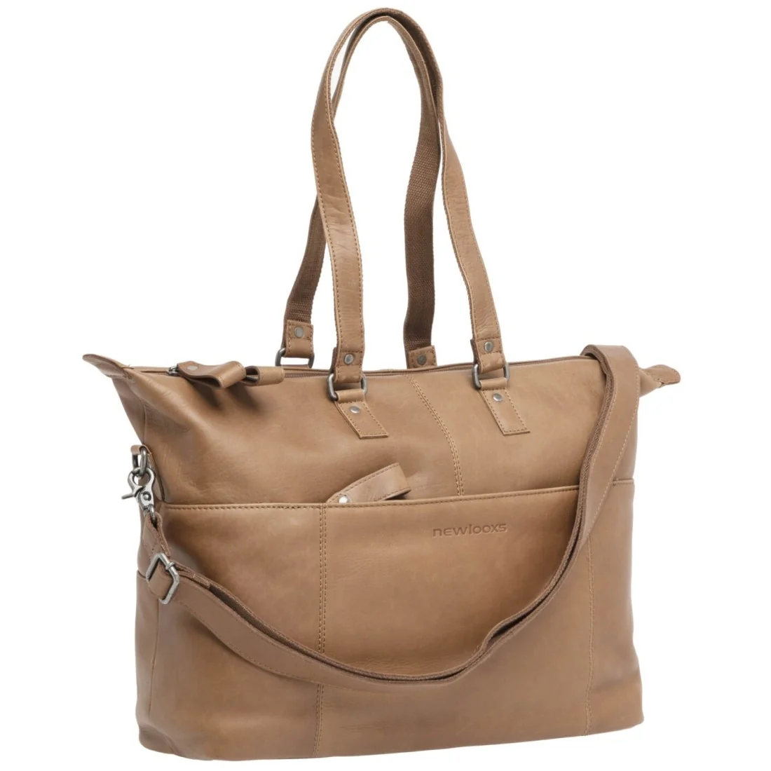 De Fietstas New Looxs Verla is een moderne en veelzijdige tas die gemaakt is van luxe en stevig leer. Met deze tas heb je niet alleen een fietstas, maar ook een schoudertas en laptoptas in één. Met een ruim hoofdvak, diverse kleinere vakjes, een gewatteerd vak voor je laptop en een aparte hoes voor je tablet, kun je al je spullen georganiseerd meenemen. Losse items kun je snel opbergen in het brede ritsvak aan de buitenkant, waardoor deze tas ideaal is voor woon-werkverkeer.