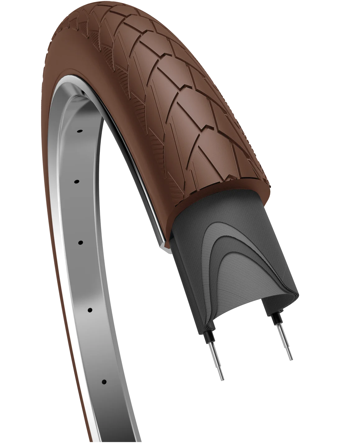 Buitenband Edge Mambo 28 x 2.00" / 50-622 mm - donkerbruin met reflectie biedt een unieke combinatie van stijl en functionaliteit. Geschikt voor diverse fietsmodellen, van stadsfietsen tot trekkingfietsen, deze band garandeert een comfortabele, veilige rit onder uiteenlopende omstandigheden.