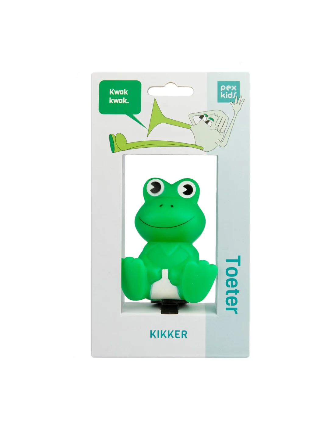 Voeg wat plezier en veiligheid toe aan de fietsavonturen van je kind met de Fietstoeter PexKids Kikker - groen.