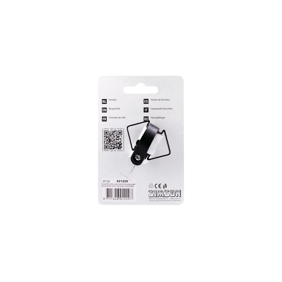 De Simson fietsbel Mini 32mm met vaste kunststof bevestiging in de kleur zwart is de perfecte toevoeging aan je fiets. Met zijn sportieve uitstraling en heldere geluid zorgt deze bel ervoor dat je altijd veilig en stijlvol onderweg bent.