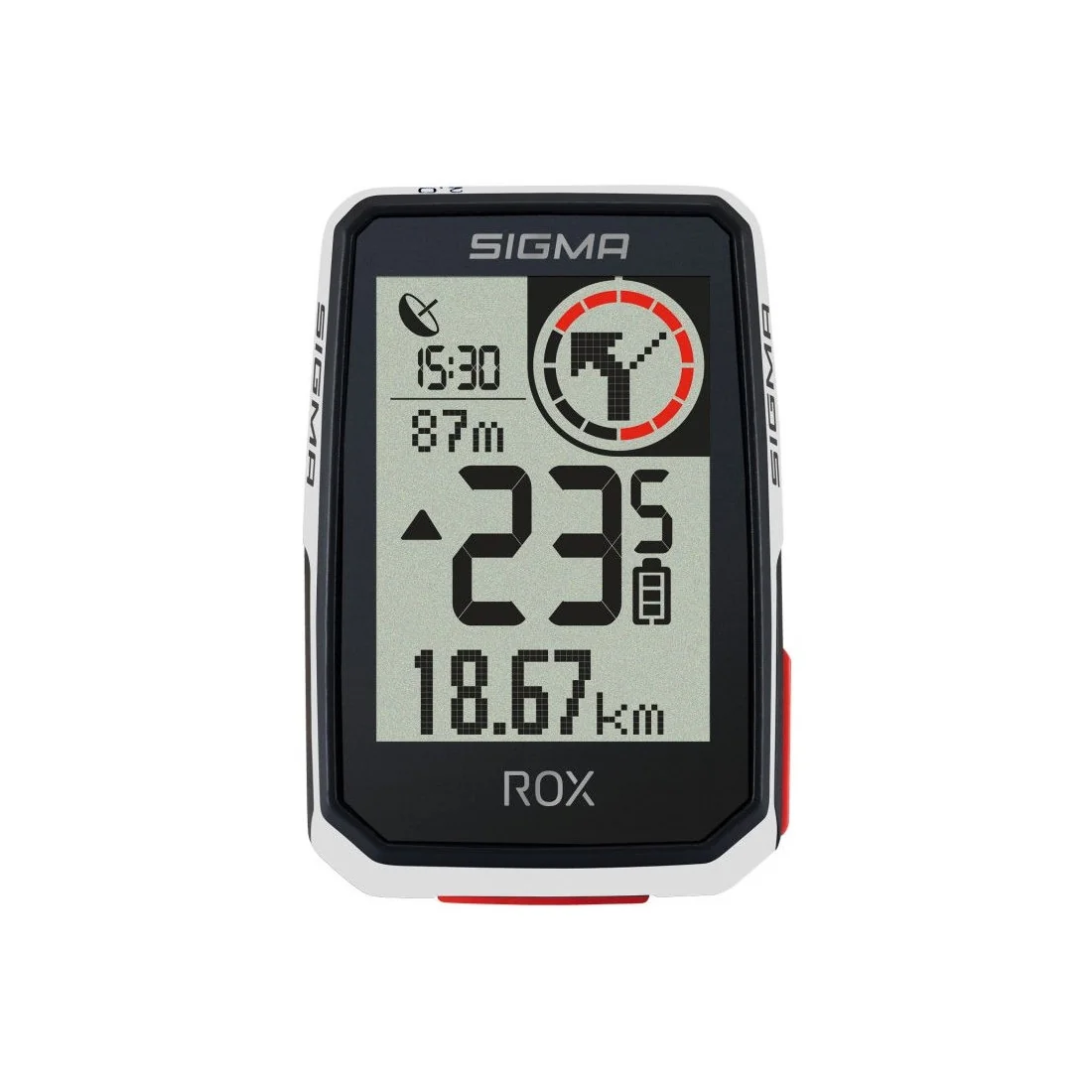 Het contrastrijke 2-inch grote display van de ROX 2.0 is zeer goed afleesbaar tijdens je rit. De innovatieve Red Circle rechtsboven in het display biedt een hoogwaardige weergave van je trainingsdata. Met behulp van de SIGMA RIDE App kun je jouw individuele displayweergave instellen, zodat je alle belangrijke informatie in één oogopslag kunt zien.