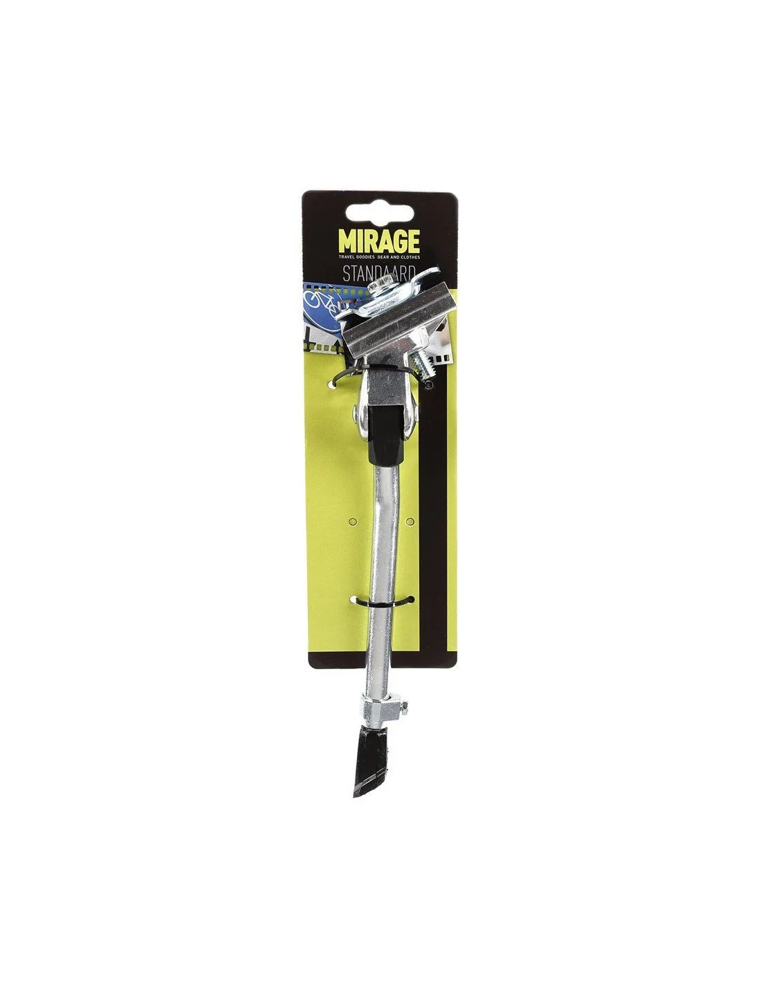 De Mirage fietsstandaard is ontworpen met stevigheid en duurzaamheid in gedachten. Met de bout aan de achterzijde kan de standaard eenvoudig worden bevestigd en gefixeerd nadat de juiste lengte is bepaald. Hierdoor staat je fiets altijd stevig en stabiel, of je nu onderweg bent of je fiets parkeert.