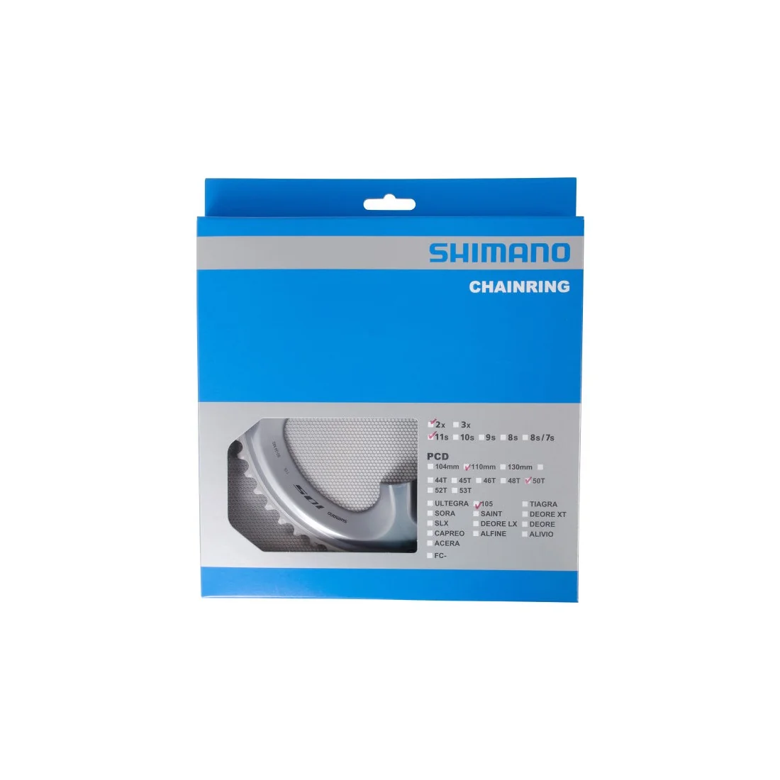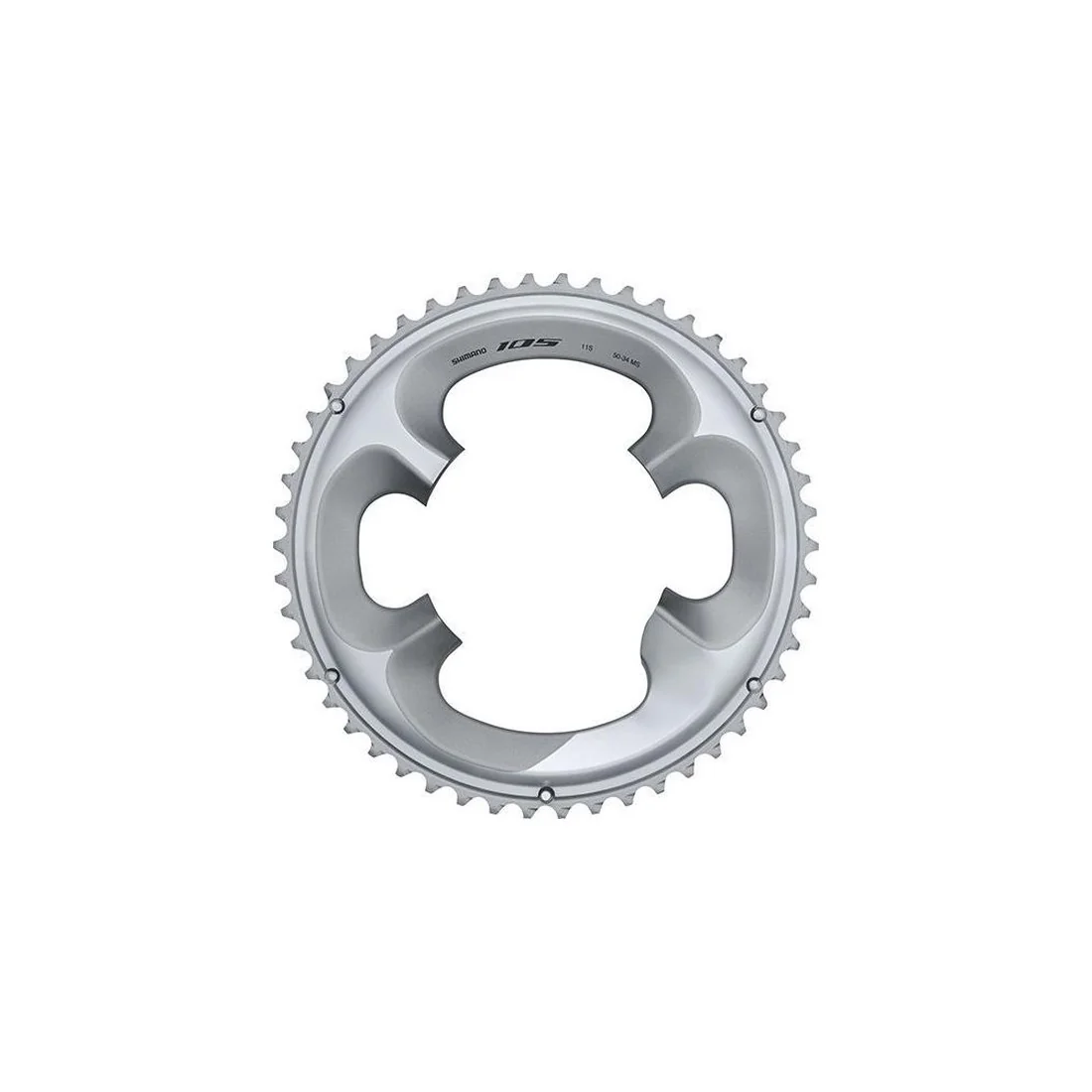 Dit Kettingblad 50T Shimano 105 FC-R7000 - zilver is een hoogwaardig onderdeel dat speciaal is ontworpen voor Shimano's 105 groep. Met een 4-gaats bevestiging en een boutcirkeldiameter van 110 mm, is dit kettingblad perfect geschikt voor de FC-R7000 crankset.