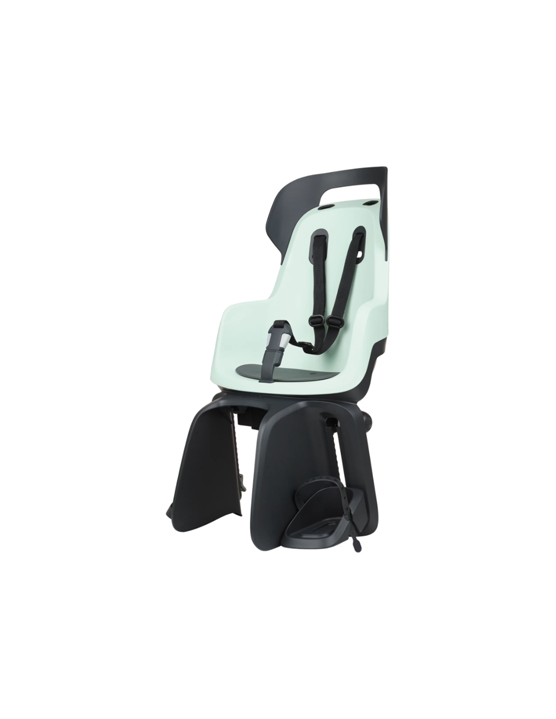 De framebeugel is uitgerust met een veiligheidshouder met groene indicatoren, die oplichten als visueel signaal voor een correcte installatie. Dankzij dit systeem kun je het fietszitje in drie posities naar voren en naar achteren bewegen, afhankelijk van de grootte van je kind en de fiets. Dit maakt het mogelijk om altijd de perfecte positie te vinden.