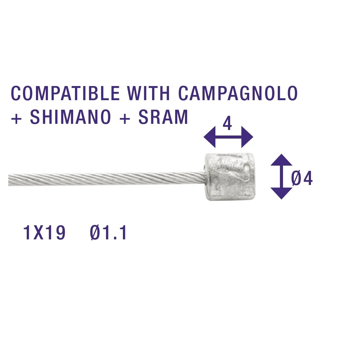 Met een lengte van 2250 mm is deze binnenkabel geschikt voor de meeste fietsen. De diameter van 1,1 mm zorgt voor een goede pasvorm in de meeste derailleurbehuizingen. Met 19 draden is de kabel stevig en betrouwbaar, zodat je kunt vertrouwen op consistente schakelprestaties.