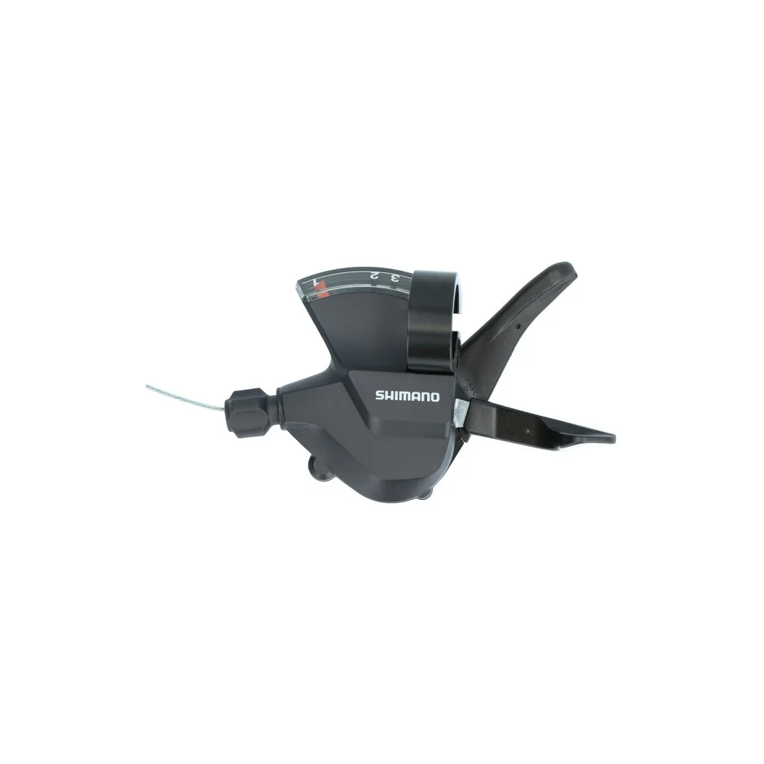 De versnellingsindicator van de Versteller (links) 3 speed Shimano Altus SL-M315 is strategisch gepositioneerd onder het stuur, waardoor je in één oogopslag de versnellingspositie kunt zien. Dit zorgt voor een intuïtieve en probleemloze schakelervaring, zodat je je kunt concentreren op het genieten van je rit.