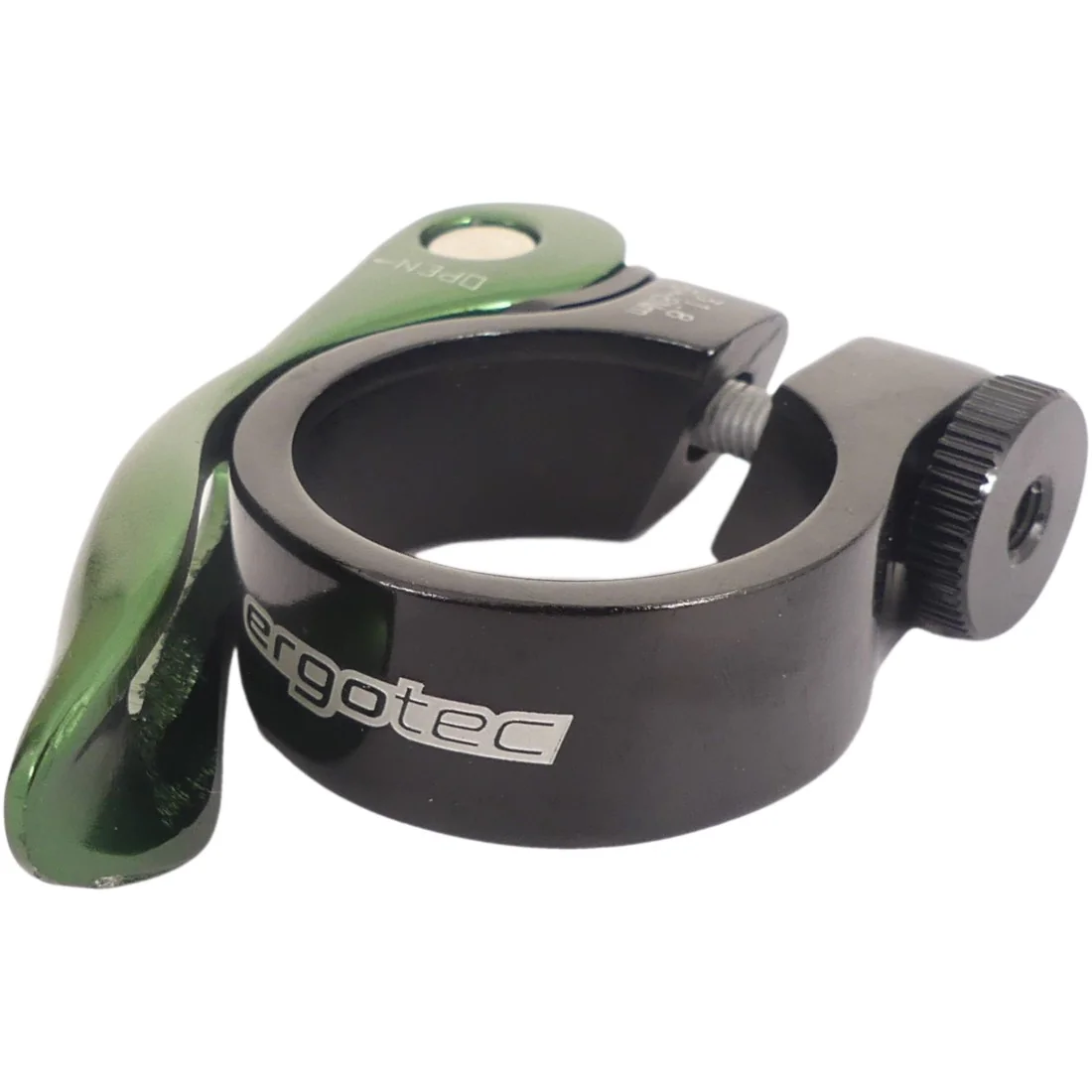 De Zadelpenklem Ergotec SCQ-0100 ø31,8 aluminium met snelspanner in zwart/groen is een uitstekende keuze voor fietsers die op zoek zijn naar een lichtgewicht en duurzame zadelpenklem. Met zijn snelsluitingssysteem is het gemakkelijk om de klem snel en veilig aan te passen aan de gewenste positie.