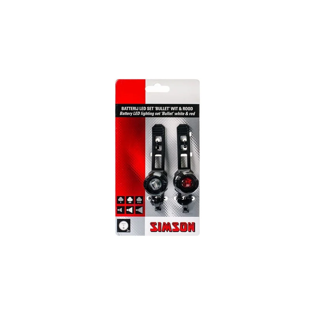 De Simson Battery LED Verlichtingsset "Bullet" wordt geleverd met 4 x CR2032 batterijen, zodat je direct aan de slag kunt. Deze batterijen bieden een betrouwbare stroomvoorziening, zodat je je geen zorgen hoeft te maken over lege batterijen tijdens je fietstochten.