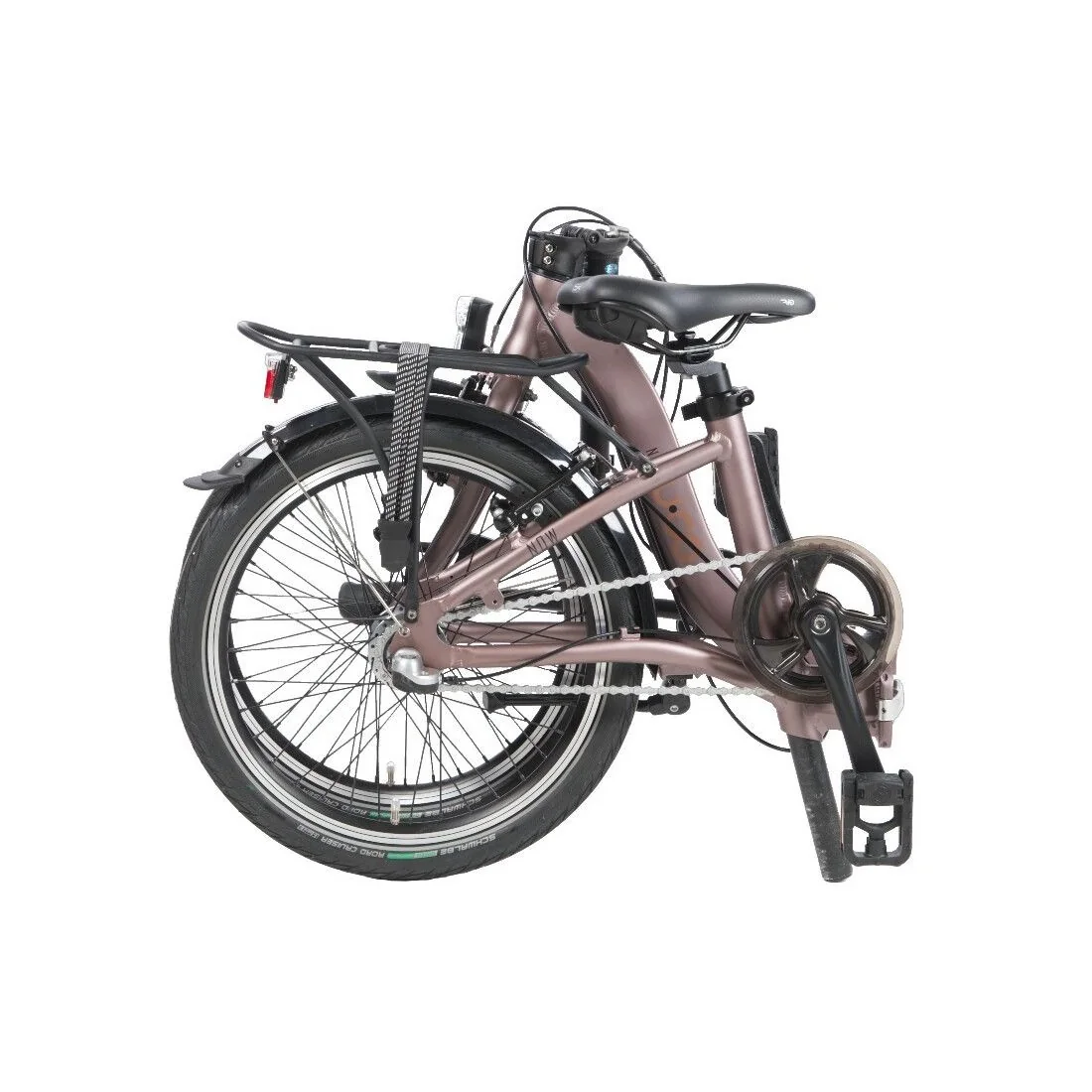 De vouwfiets wordt geleverd met handige accessoires, waaronder een aluminium drager, koplamp en achterlicht, magneet sluiting en snelbinders. Hierdoor kun je gemakkelijk je spullen meenemen en ben je altijd goed zichtbaar in het verkeer. De vouwfiets heeft een unieke kleur, marroon brown, die zorgt voor een stijlvolle uitstraling.
